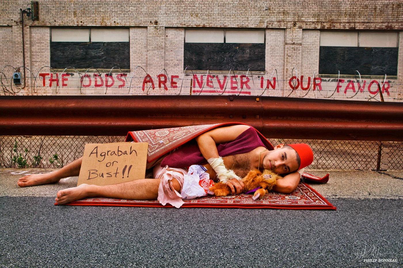 This shoot focused on some of the running gags from the film, while also showcasing a special love for unicorns and Betty White. By including past "Heroes + Villians" images into the shoot, it's becomes self-referential with the character fully realizing that he is part of an art series himself.