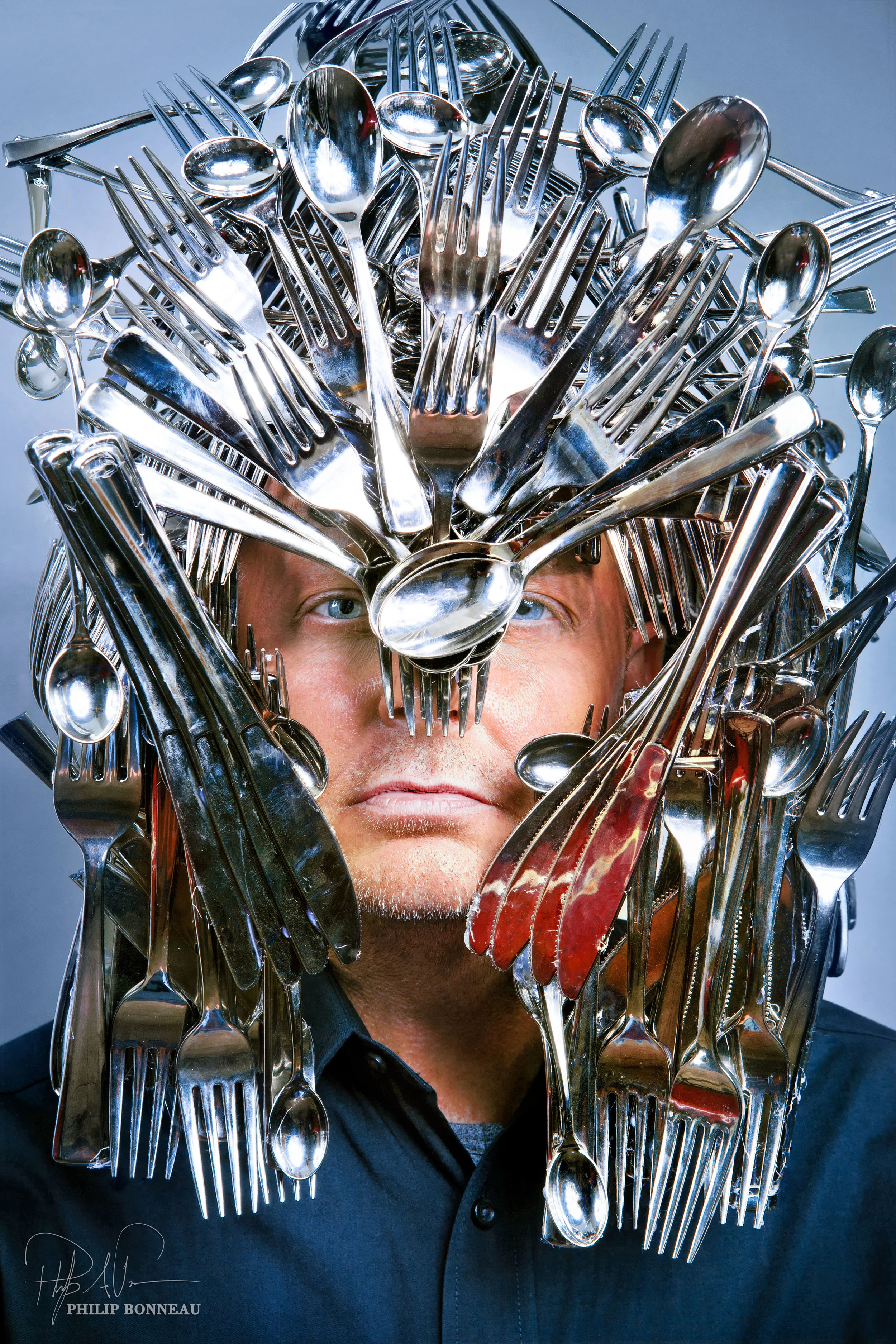 This is an artist test-of-concept self portrait. Often throughout this series, I would test many concepts on myself before bringing in particular models. But this image has stood the test of time in this series as one of the showcase pieces that nails the combination of concept and model personality.